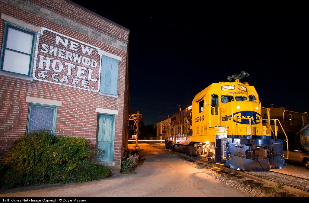 ATSF 2546 idles next to the New Sherwood Hotel & Cafe as protection power in case of a mechanical failure of the L&N 152 while it pulls the Murder Mystery Train to Boston and back. Thanks to the KRM and Willy Ward for making this photo possible.