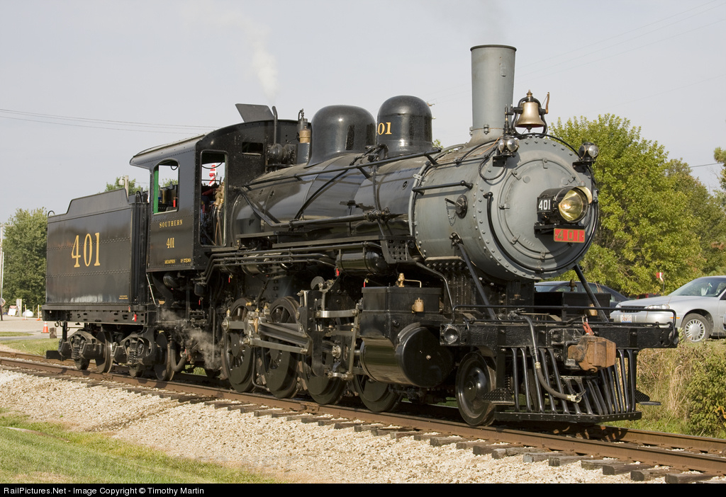 | Southern No. 401 has just been given a drink of water, courtesy of a nearby hydrant and hose. The locomotive is ready to return to its passenger consist and pull one more trip to Monticello on the day of it's inaugural trip. |