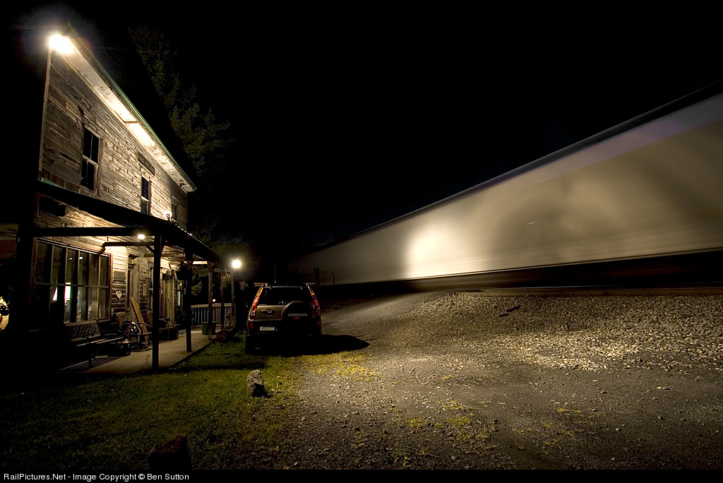 | Roger Snyder (the owner of the CR-V) and I relax by the world famous Mance Post Office as a fast Q358 races down the hill. Thanks to Roger Snyder for lighting the scene and for the warm and welcome conversation. |