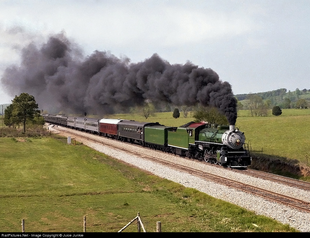 Shortly after leaving Chattanooga, Southern 4501 is in the Tennessee countryside on a beautiful spring day. The train is the Dogwood Arts Festival Special, and the destination is Knoxville. The train has 600 passengers aboard and it looks like they will get their money's worth today!