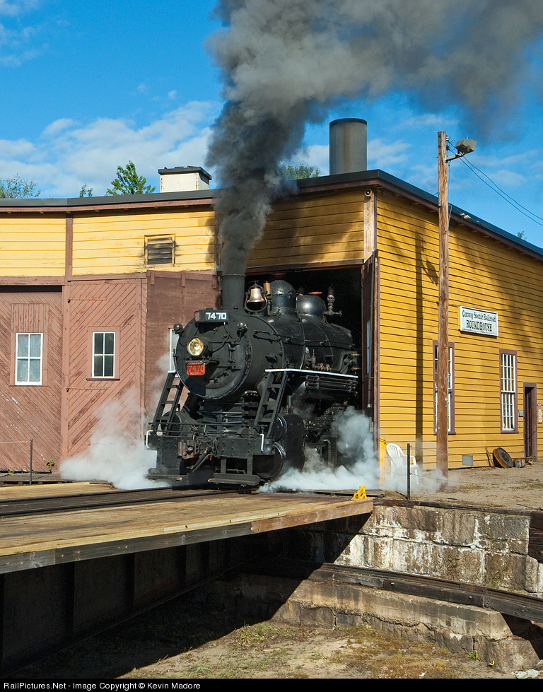 Well, hello there old friend! After over 9 months of hibernation, Canadian National Switcher #7470 emerges from her "den" in the Conway Scenic Roundhouse to the delight of steam enthusiasts all around the Northeast. For a number of good reasons, the old gal hasn't worked much over the last several years, but the folks up at Conway Scenic had promised she'd run during the fall foliage season in 2010 and on the first day of the line's annual Railfan Weekend, they brought her out in grand style. The steamer pulled 3 excursions to Conway each day, as well as one up to Bartlett. As an added bonus for the photographers present, she ran all trips on the first day facing south (railroad east), opening up a number of photo opportunities that don't normally exist on this line. If you want to see steam with some great mountain scenery and fall foliage, head on up to North Conway and check her out!