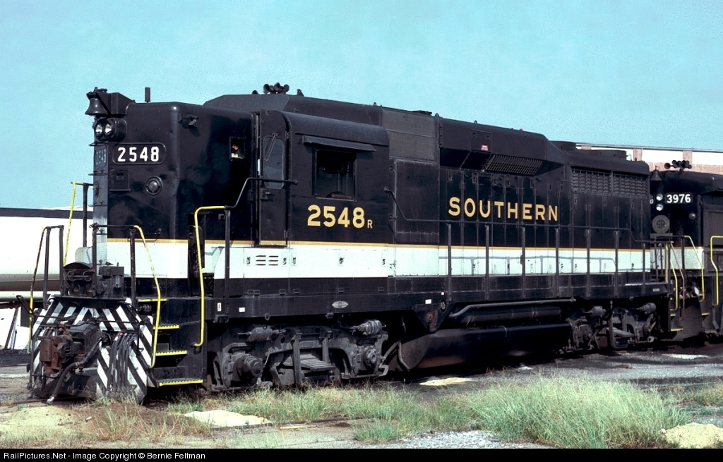 Southern Railway Sylacauga, AL to Columbus, GA long-distance local #46 has arrived at Columbus Yard and put off duty after yarding its train. Today's power, a GP30 and B23-7 pair, will lead counterpart train #45 back to Sylacauga as soon as the crew reports for duty