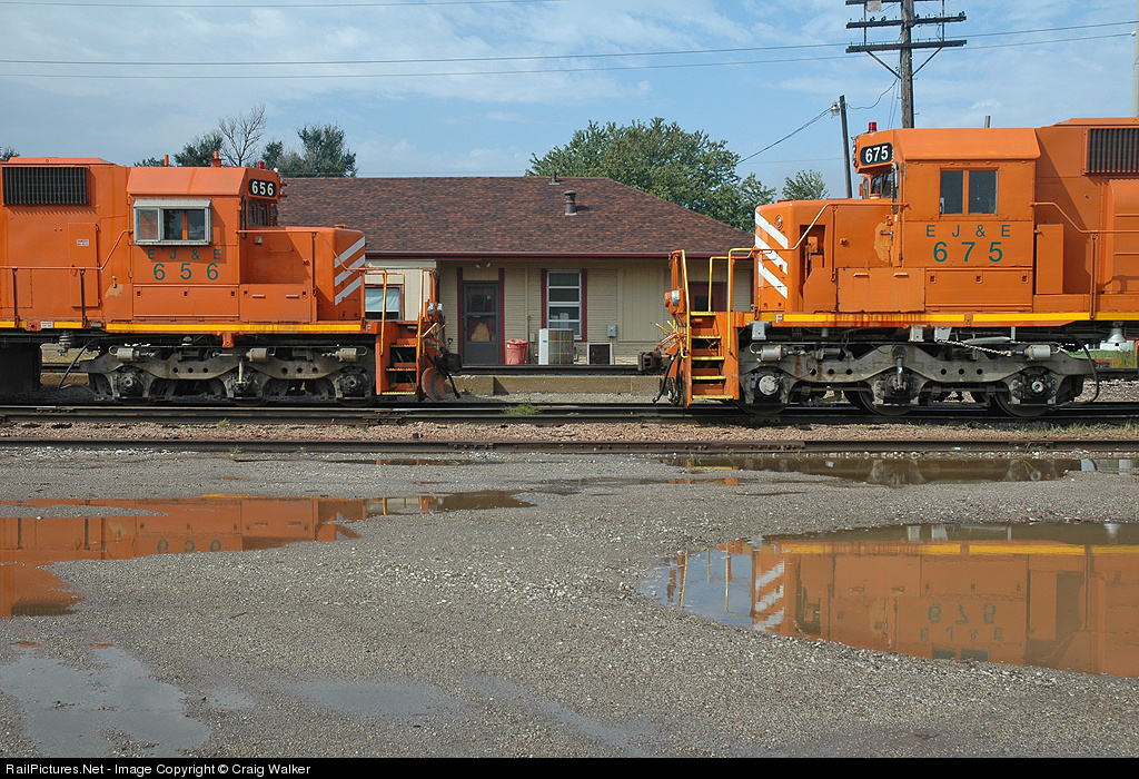 Taking on the appearance of Chicagoland, thanks to the presence of a pair of former Elgin Joliet & Eastern SD38-2s, is Council Bluffs, Iowa. The two diesels are now owned by Canadian National, but they still wear the colors of their previous owner. EJ&E 656 was purchased new, but SD38-2 675 was purchased from the Union Railroad (URR's #53), which they acquired from the Bessemer & Lake Erie (B&LE's 879). With the absorption of the EJ&E and recent purchases of second-hand UP and BNSF diesels, the CN has become one of North America's most interesting - and colorful! - railroads.