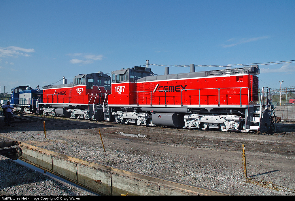 A pair of SW1500s, LTEX 1507 and 1537, being readied for use by CEMEX, are switched at Midwest Locomotive Company in Kansas City, Missouri. The engine shuttling these diesels is