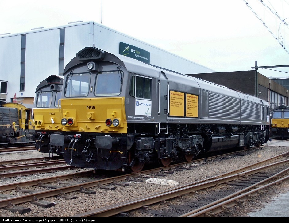 | Two diesels built in Canada by GM Electro Motive owned by leasing company Porterbrook in front of Nedtrain shops. Nedtrain acts as a "dealer" for these locomotives now in use by several european railways |