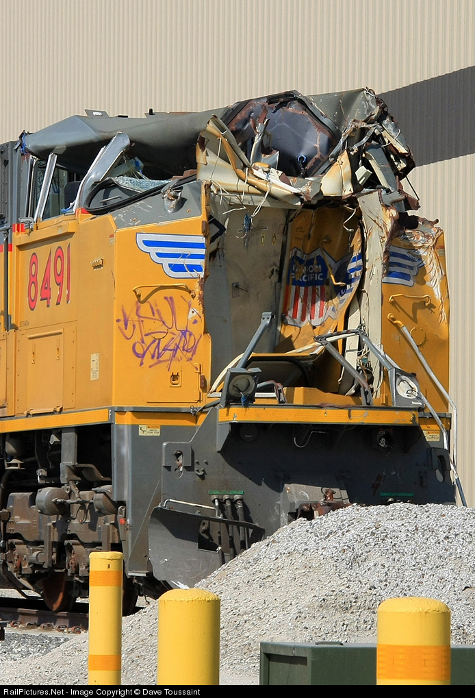 | UP 8491 was the locomotive 2nd to the lead on the southbound freight train that was involved in a head-on collision with Metrolink SCAX 855 on 09/12/08 in Chatsworth, CA.