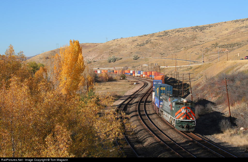 It's October so it is fitting that UP put some orange on the point of this K train. The Western Pacific heritage engine blends nicely with the fall colors as it pulls the one by one 95 car stack train East.