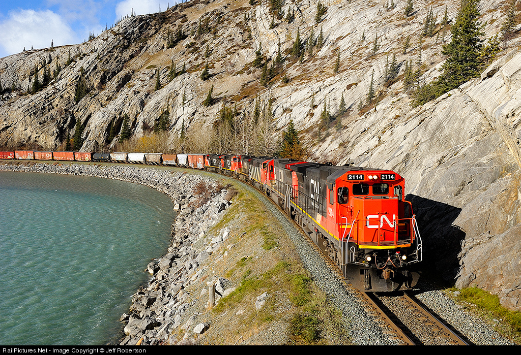 With six units on the point, M304 winds through the 25 MPH slow order at the Brule tunnel. Locomotives were CN 2114, CN 2125, CN 5504, CN 2637, CN 2251 and CN 2223. The 2637 was dropped at Dalehurst to be added to a coal train and the two ES44s were dead and drained.