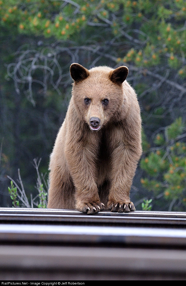 I had just cleared the track and was sitting having lunch when this Brown bear made an appearance on the other side of the tracks. We stared at each other for a few minutes and I told him he had best clear the track as VIA was coming and I didn't want to see him get hit.