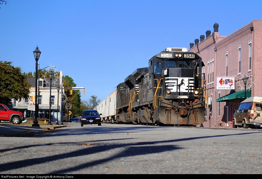 Woman vs. Machine! This IS Street Running! NS 191 with a rare Dash 8-32B, usually seen on Yard or Local Jobs, leading the way makes its way down the middle of 6th Street as an impatient female driver guns it towards me (laying down along the side of the street) in an attempt to beat NS 3541. I had to literally roll to the curb in order not to become part of the pavement, but I think the power leading Today's train was 100% worth it. I don't think a trip to Vegas Show Girls would have quite topped this! Well, I take that back!