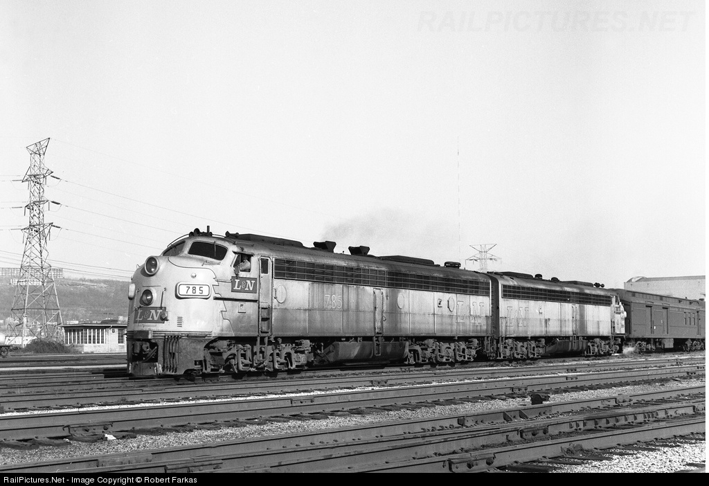 L&N 785 and companion wait in the afternoon sun at the Cincinnati Union Terminal. I had permission to take this shot, yet the next day when I went back, I was told it had been many years since a railfan was allowed to take photos from the platforms. My guess was that they just didn't want to be bothered with railfans that day as my two fellow railfans and I had railfanned cautiously the previous day and were not hassled in any way.