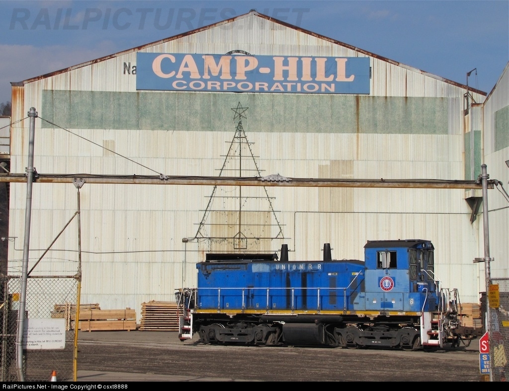 Union Railroad SW1500 6 shuffles about and around in the Camp Hill piping mill on the McKeesport Connecting trackage. Camp Hill is formerly part of the National Tube Works, which is now barren land mainly where it once stood.