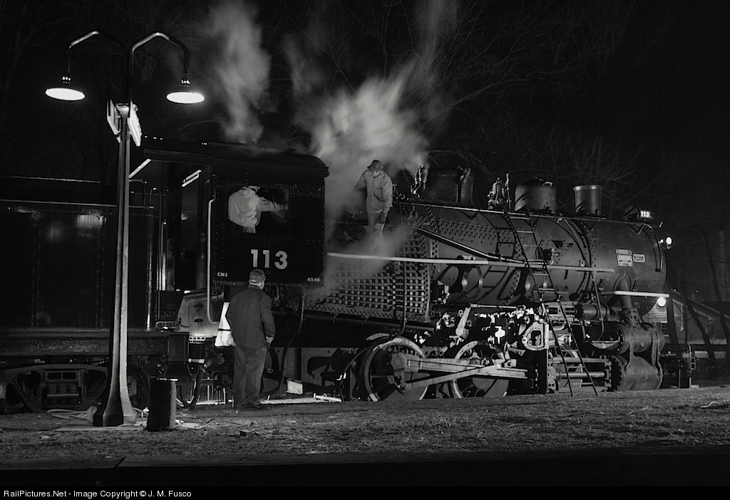CNJ #113 simmers under steam during a steam test next to Minersville Station platform.