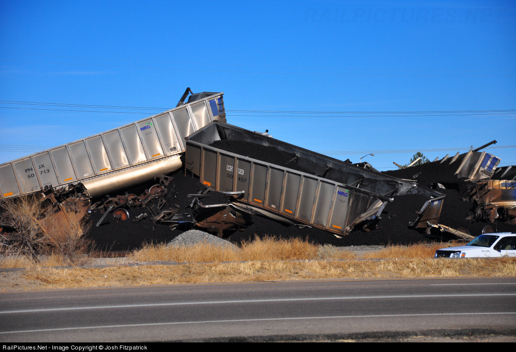 A southbound BNSF coal train derailed around 8:00am November 27 2010 creating a large pile up. Shortly after leaving Pueblo Colorado the train jumped the tracks about 25 cars behind the locomotives in all 31 cars left the tracks creating about a 2 story high pile of coal and shredded hoppers.