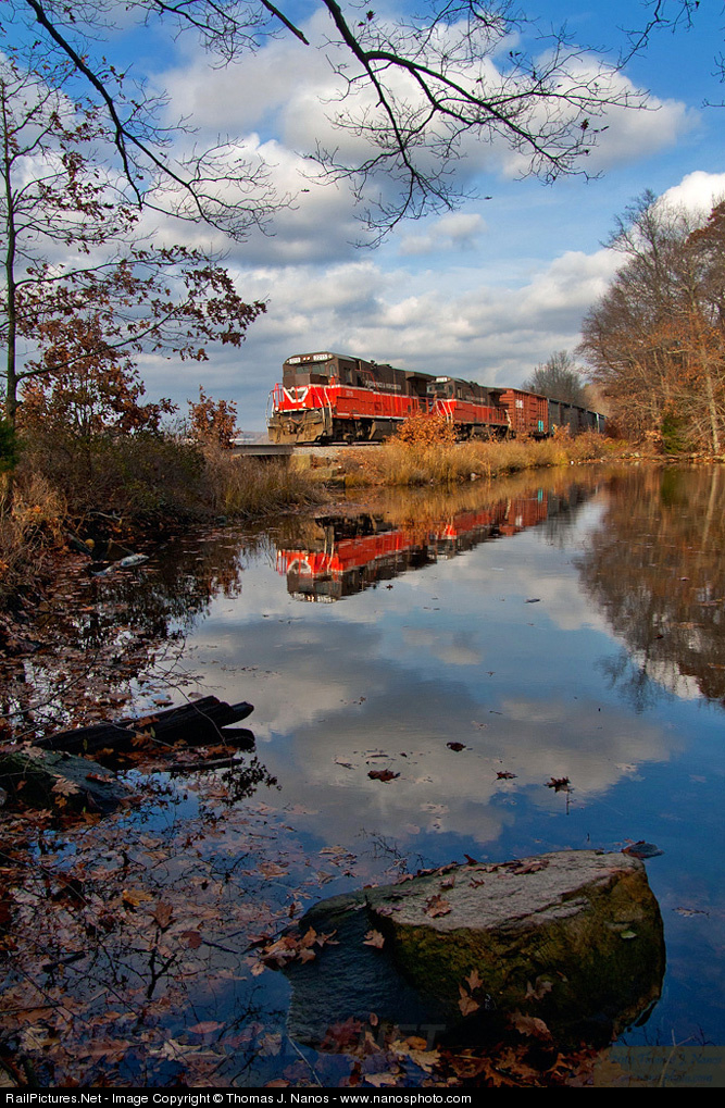 | PW 2215 & 2216 lead Providence & Worcester train NR3 south through Ledyard, CT at lunchtime on a late November afternoon. Canon EOS 40D, Sigma 18-50mm f/2.8 EX DC |