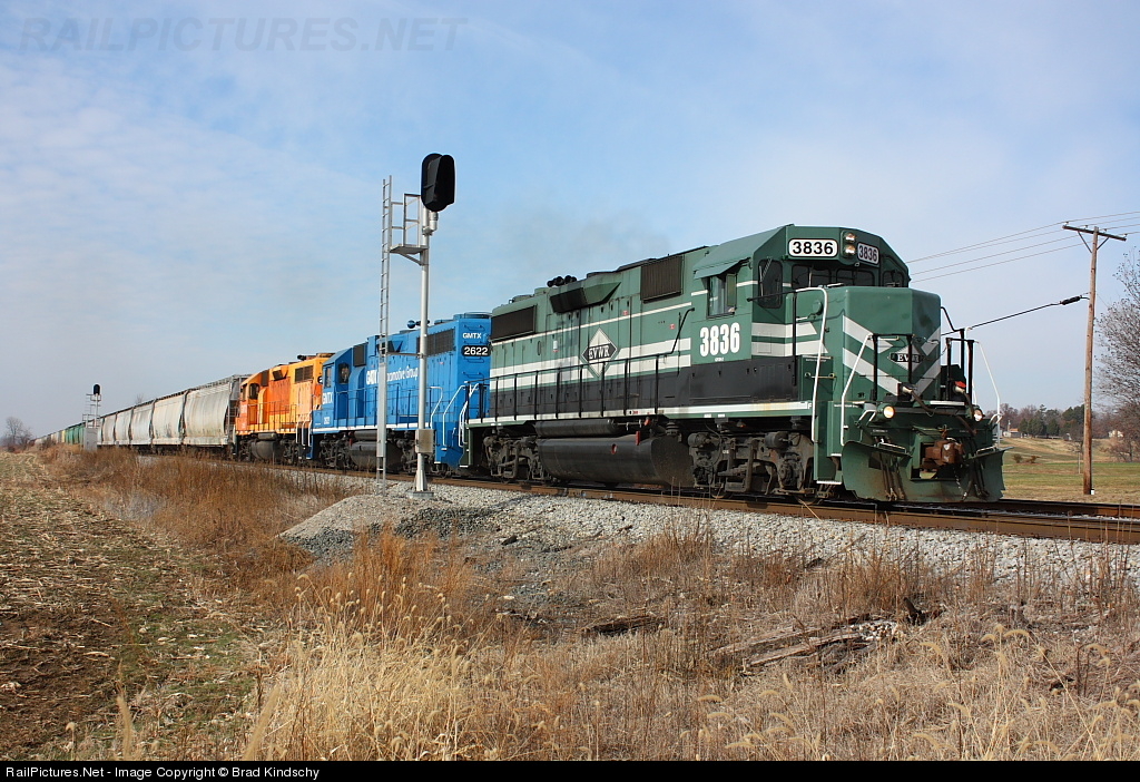 RailPictures.Net Photo: EVWR 3836 Evansville Western Railway EMD GP39M-2 at Mount Vernon, Indiana by Brad Kindschy