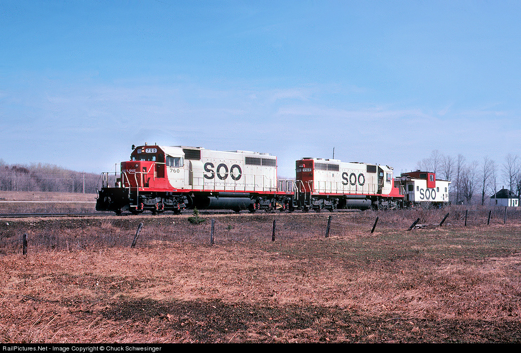 RailPictures.Net Photo: Soo 760 Soo Line EMD SD40-2 at Trout Lake, Michigan by Chuck Schwesinger