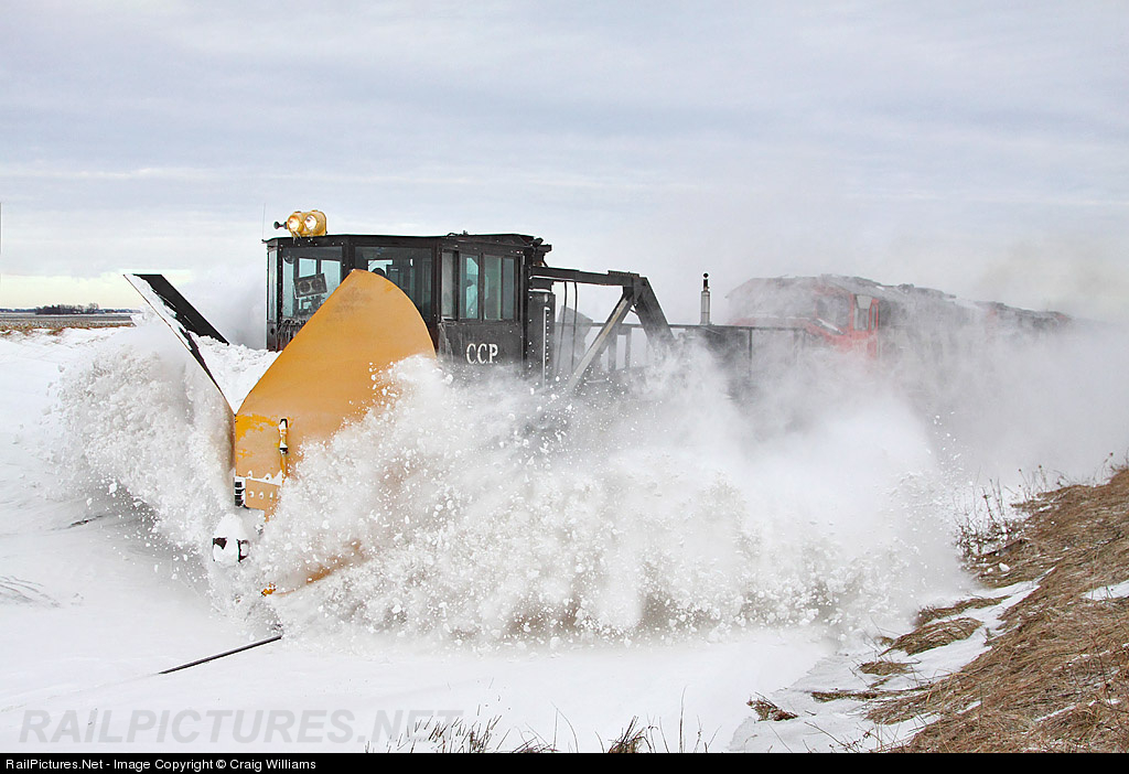 | The 1st snow storm for the 2010-11 season has the CN bringing their Jordan Spreader out to nose plow and flange the subs west of Ft Dodge, IA. Here the plow extra blast thru a cut at MP 424 that has a few small drifts in it. Sounds like CN is committed to using this plow alot more if winter sets in this year. |