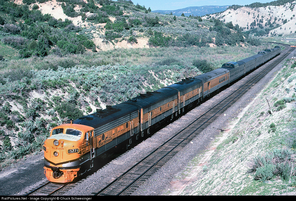 A remnant of the original California Zephyr, this train offered great dining and many as five Vista-Dome cars for viewing the Rocky Mountain Scenery. It was the last train to be replaced by Amtrak.