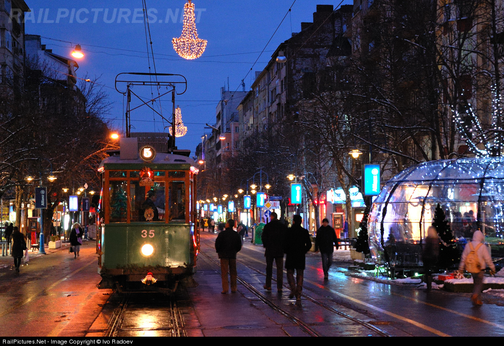A Christmas tram in Sofia, at Vitoshka blvd.