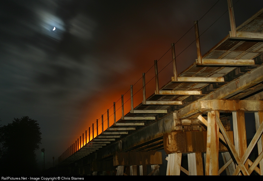 Bridge and intermediate signals at Salvisa on a moonlit night
