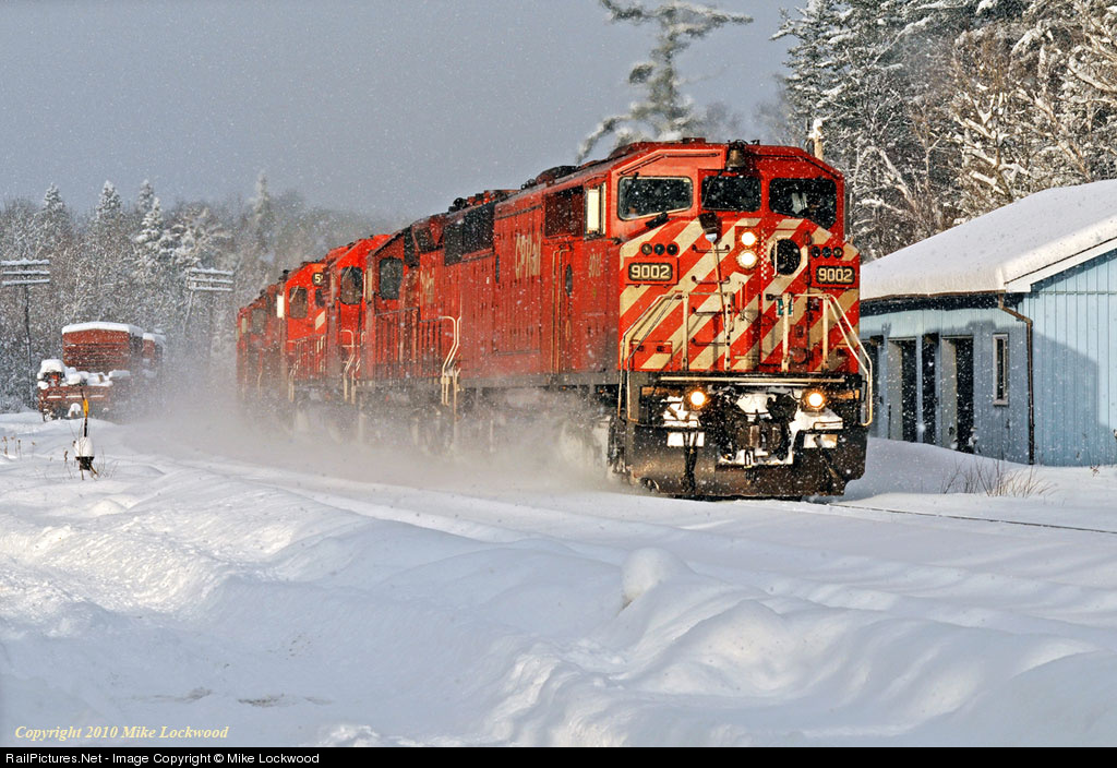 Passing southbound through Waubamik, Ontario, on CN's Bala Sub, CP 9002 leads five SD40-2's and 220's train towards Boyne and connection to CP's Parry Sound Sub. This nondescript siding on CN's transcontinental mainline can become a nice spot when the conditions are right. The trailing SD40-2's are CP 5763, 5984, 5925, 6037, and 5966. 1432hrs.