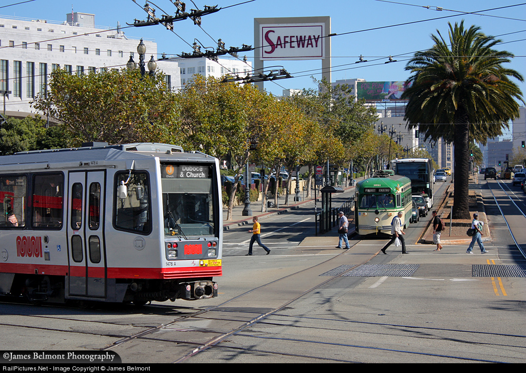 RailPictures.Net Photo: MUNI 1476 & 1051 San Francisco Municipal Railway Breda LRV & PCC Street Car at San Francisco, California by James Belmont