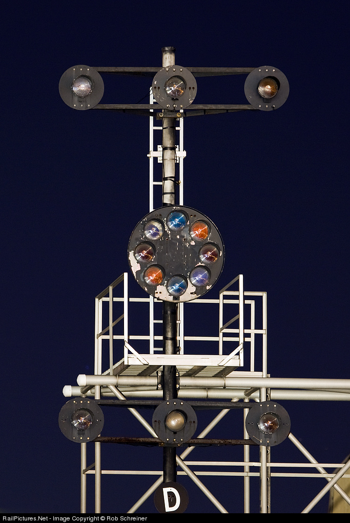 The view looking westbound from Bush Street. "New" install of B&O CPL's on today's standard cantilever bridge. Sure wish they had used primer on the background. The only inservice, full / complete (four color indications and six markers) CPL that I'm aware of, museums not included.