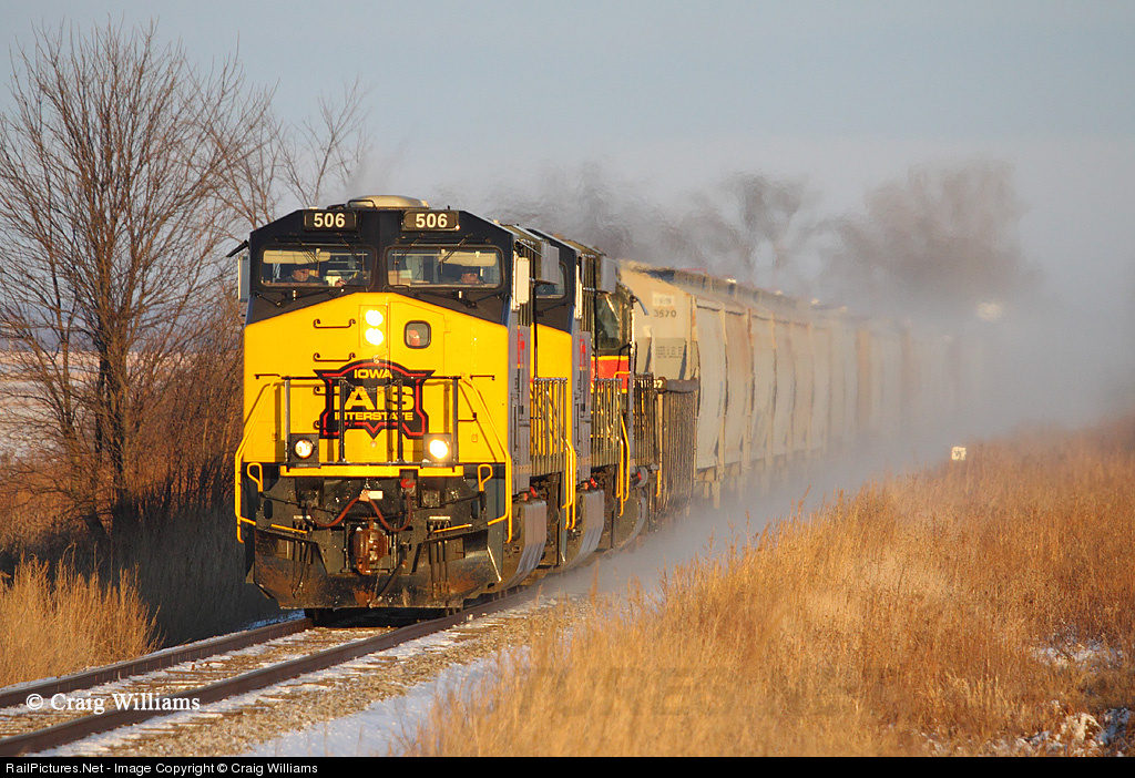 The Blue Island, IL, to Council Bluffs, IA, manifest train kicks up snow as they blast towards Newton, the next crew change. The sun is getting low on this cold afternoon. The train is running along in the mid-30 mph range as the crew only has one GEVO running making easy work of the mainly empty train.