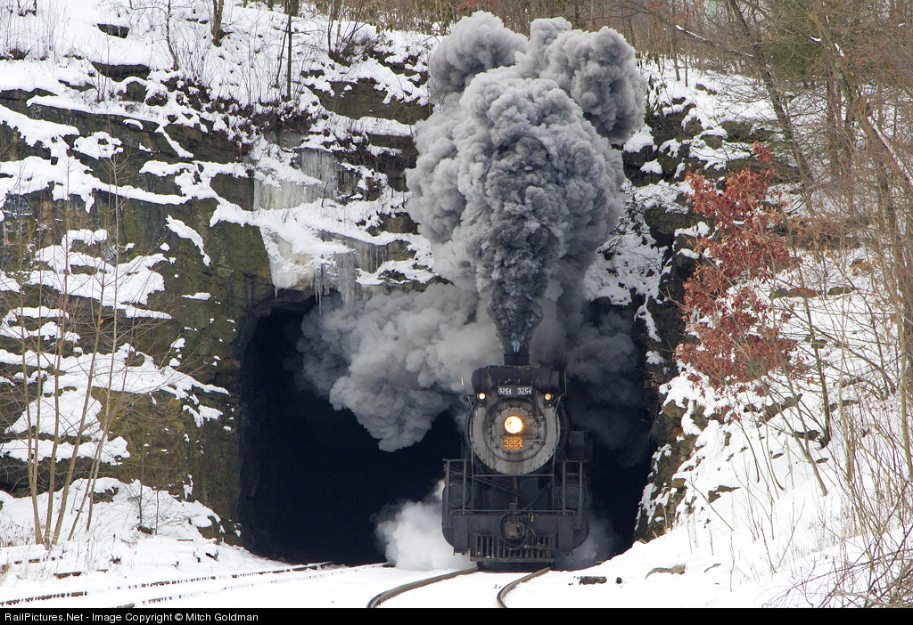 CN 3254 makes her appearance known at Nay Aug Tunnel during a Steamtown excursion to Tobyhanna, PA.