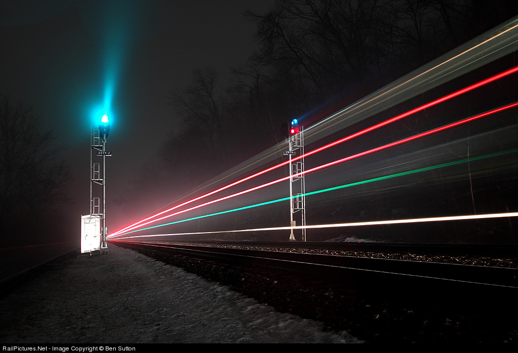 Capitol Limited, P029, flies by the Gratztown signals which pierce through the thick fog and rain on this dreary first of the month.