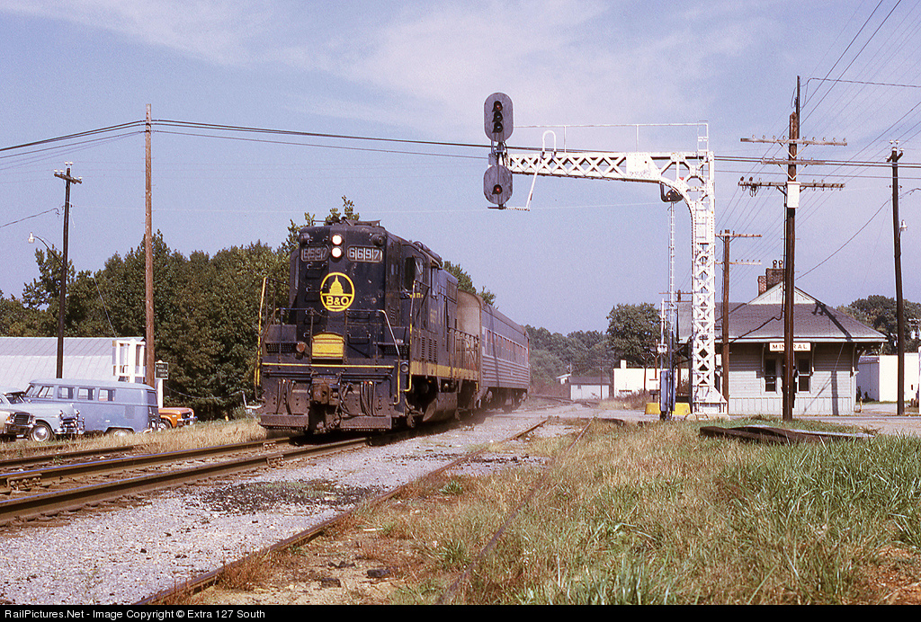 Eastbound Amtrak No. 98, the Newport News section of the "George Washington," blasted through Mineral, VA in Sept., 1973 with B&O GP7 No. 6697 and one coach. Once Amtrak took over passenger operations, Geeps became the norm on the Newport News section. Interestingly, even though C&O had several boiler equipped Geeps assigned to Clifton Forge, B&O Geeps handled the job almost exclusively. Normally, a dome coach would be assigned to the train, but on this date a regular coach was pinch hitting.
