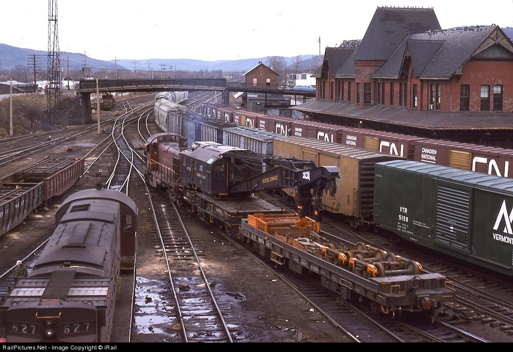 LV 213 move the LV wreck train back to the Mechanical track. In 1975 this yard was very active, today only the main line next to the station is all that is left.