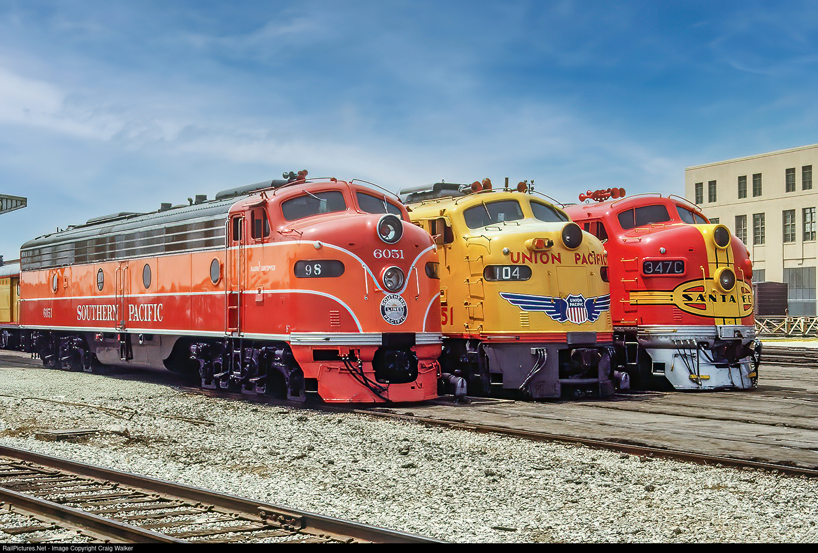 Cab units rule! As part of the celebration of Los Angeles Union Passenger Terminal's 50th Anniversary, cab units from the three original tenant railroads were posed next to each other for the many photographers present. From left to right are Southern Pacific E9A 6051, Union Pacific E9A 951 and Santa Fe F7A 347C on May 6, 1989. The SP and ATSF diesels are owned by the California State Railroad Museum, and the UP's E-unit is part of that road's historic fleet. The SP engine is carrying the number for the "Coast Daylight" in its numberboards, while the UP unit has the "City of Los Angeles" number in its boards. (Santa Fe didn’t display train numbers on their engines.) For other views from this celebration, click HERE and HERE.