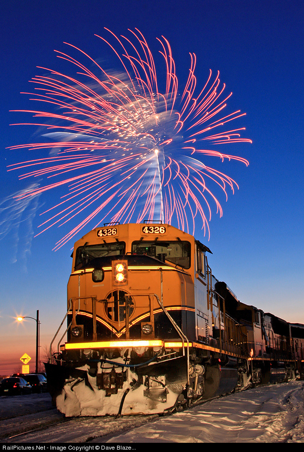 | Every year the city of Anchorage hosts a two week long celebration called Fur Rendezvous...or Rondy as it's known. This is a winter carnival and the city's biggest celebration of the year. The first weekend always features fireworks down near the mouth of Ship Creek that draw a large crowd. The location of the launch necessitates shutting down rail operations at the south end of the ARR's main classification yard and moving all haz-mat cars out of the "fall out" area. Since nothing was moving at the south end it was a perfect time for an impromptu photo shoot with a string of SD70MACs just in from a freight run. This was my first attempt ever shooting fireworks, what do you think? Note: the photographer is a railroad employee with permission to be on the property and was wearing all required PPE while taking this photograph. |