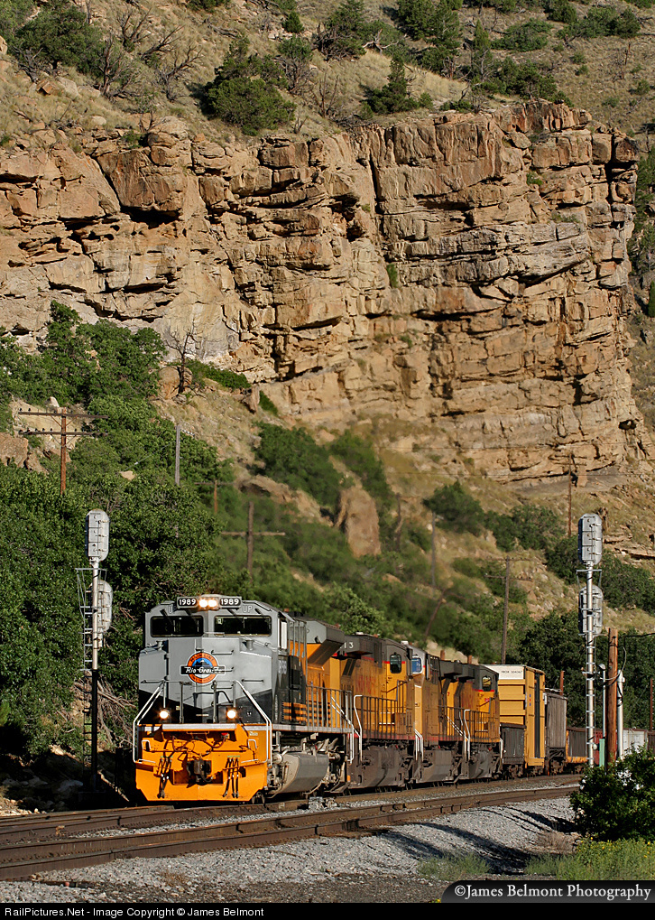 | The Rio Grande Heritage SD70ACe leads Union Pacific's Denver, CO to Salt Lake City, UT manifest through Price Canyon at Lynn, Utah. |