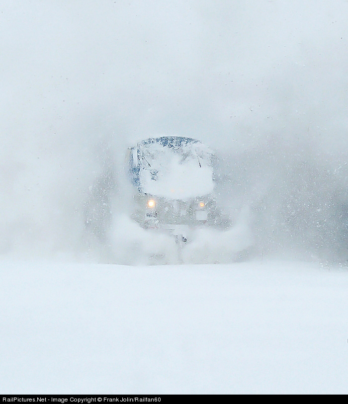 Winter storm conditions this morning as Amtrak Adirondack busts through snow drifts on its way south