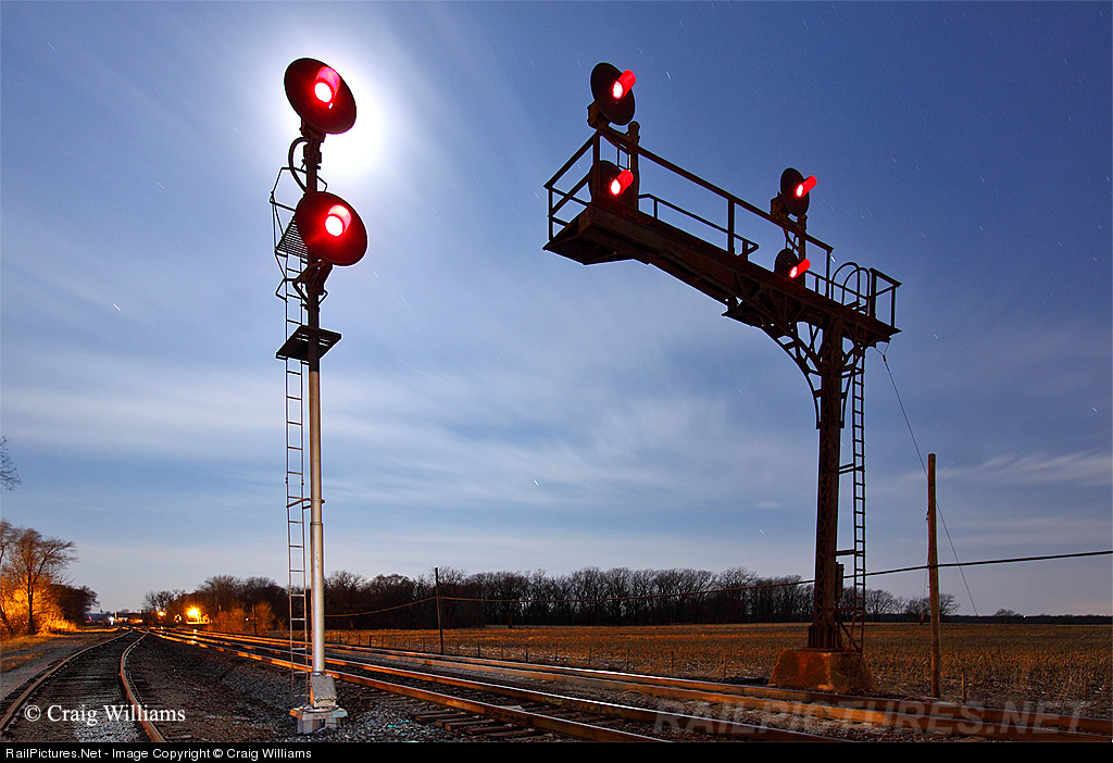 | It is 02:30 in the morning and the BNSF Chillicothe Sub is all quite for now. Here the east end of Lomax is all red. The track on the right is the connection with the TPW that isn't used anymore. This night would start off alittle slow but I would end up seeing 28 trains between 10 pm and 8 am. |