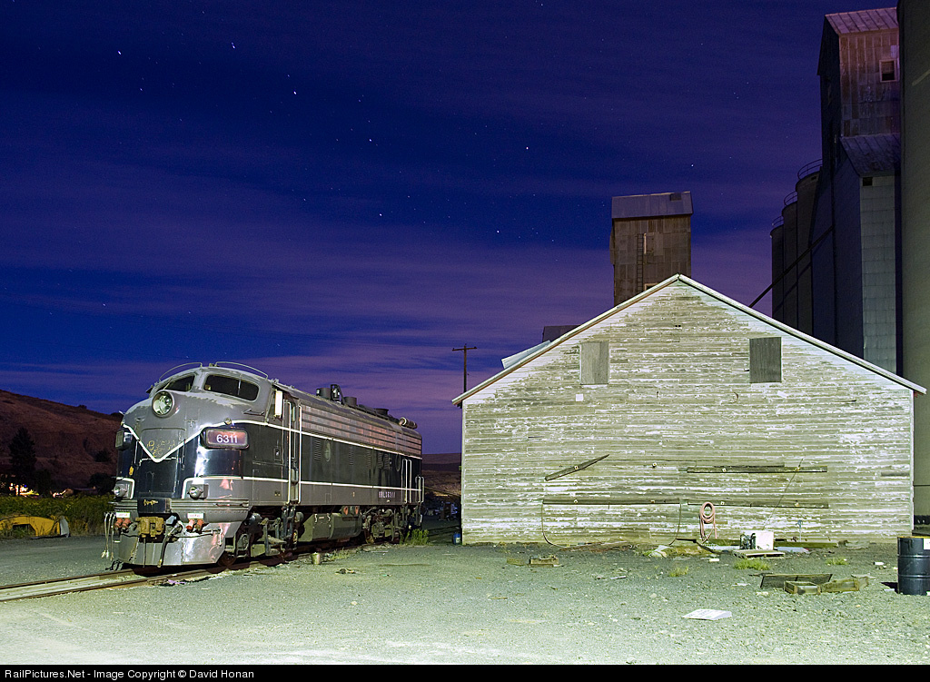 A full moon, the Big Dipper and single street light bring to life a nocturnal scene along the Washington & Idaho Railway, depicting MRLX, the forlorn sister to famed "Black Widow" 6304, awaiting repairs needed to bring the old covered wagon back to service.