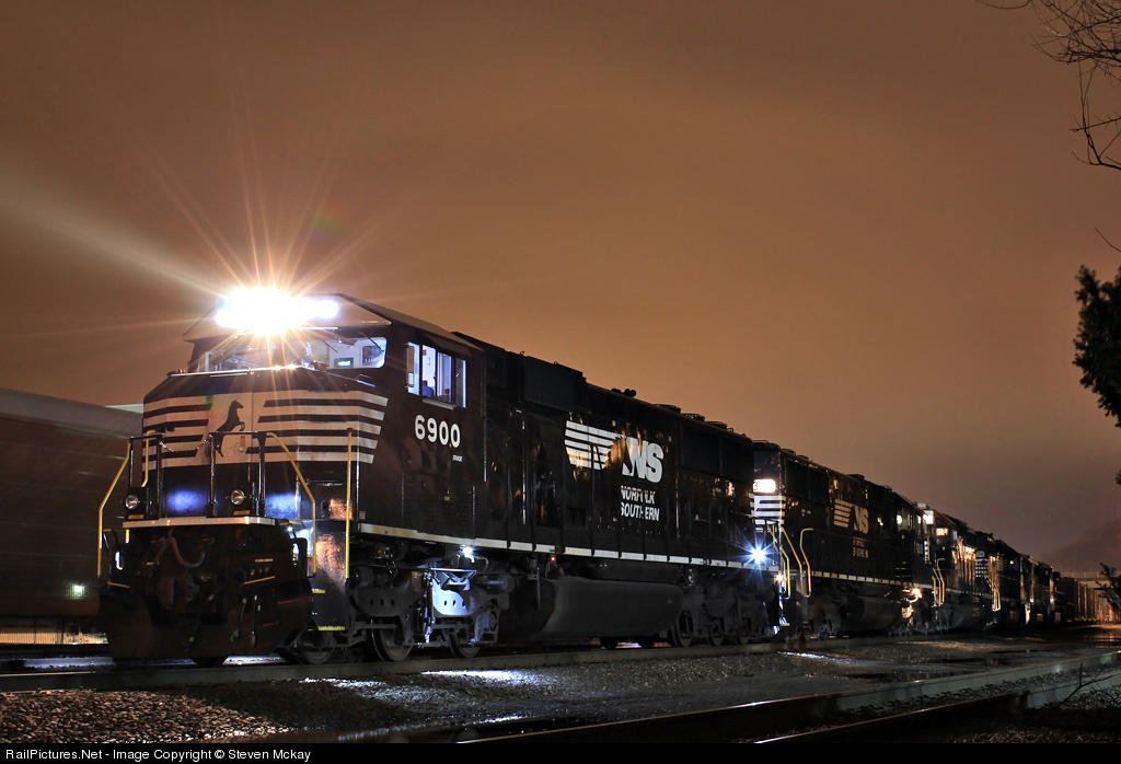 First night shot of 6900 on RP! NS 11A's re-crew is all aboard and waits to head west to Conway, 11J is on main two just to the left of the 6900. The lash up on 11A is 6900, 6319, 3352, 3374, CEFX 6000 and NS 9768