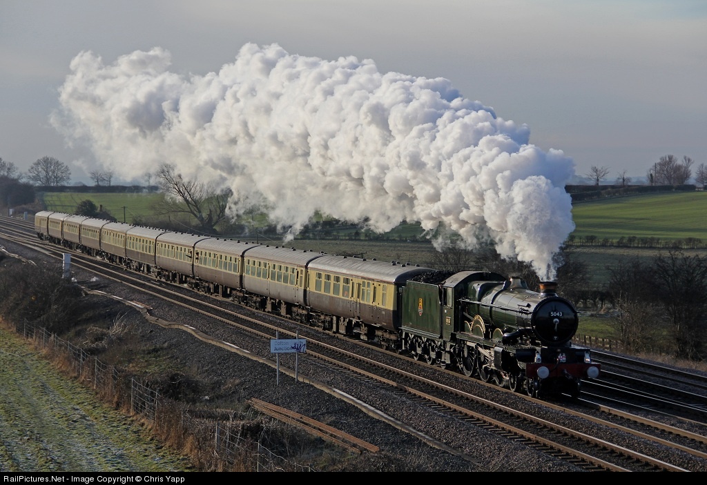 5043 Earl of Mount Edgcumbe 4-6-0 heading for York on a pre-Christmas rail tour from the Birmingham area.