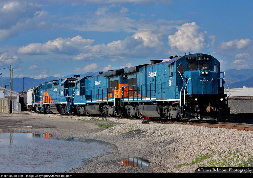 Savage Bingham & Garfield Railway power is prepped to haul a train of ribbon rail from Midvale yard to Welby used in the construction of Utah Transit Authority's Mid-Jordan light rail route. By 2009, these former Santa Fe B36-7's were utilized as needed, to drag heavy rail trains up the Bingham Industrial Lead. Today, the two EMD GP38-2's are the mainstay of SB&G's nocturnal freight operations.