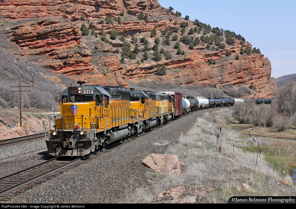 Union Pacific's LUJ61 local from Evanston, Wyoming glides west along the Evanston Sub in Echo Canyon. Three siblings are working together on today's '61' local. UP 3212, 3215 and 3213 were part of a 120 unit order, all built new for the UP by EMD in April 1973. It was really astonishing to find this trio working together some 38 years after construction by EMD at LaGrange, Illinois!