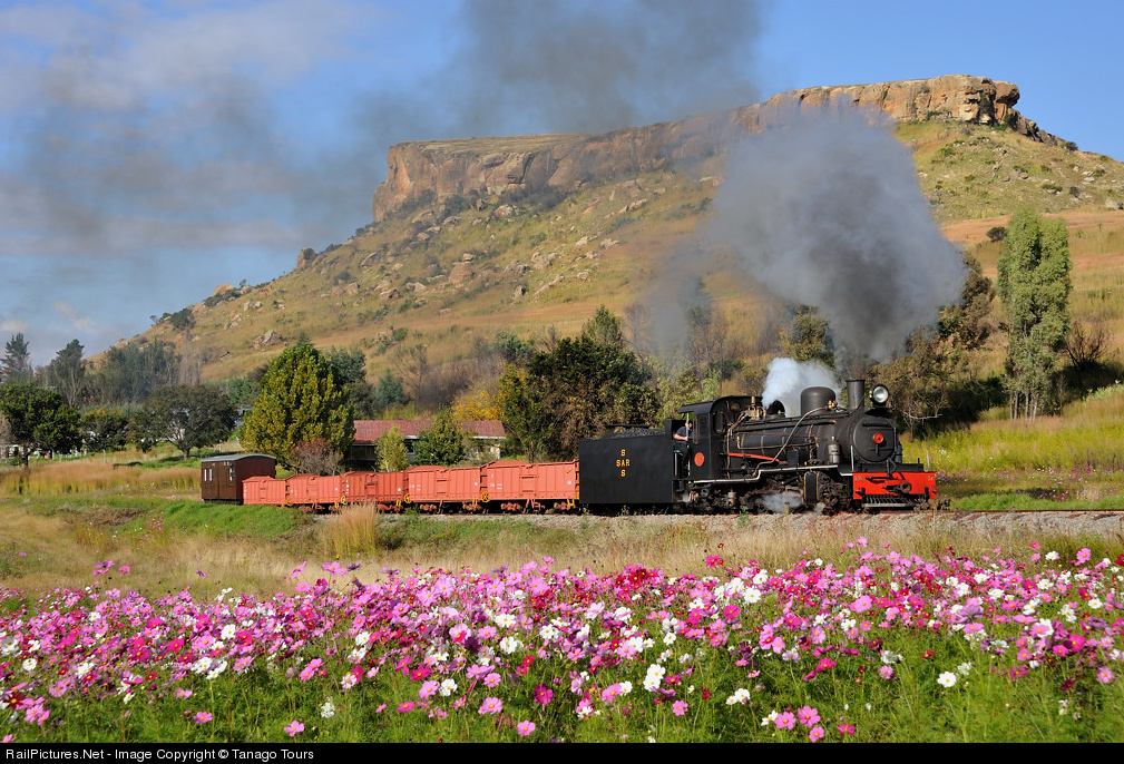 | The Cosmos flower is in full blossom in April while a narrow gauge former SAR class NG15 hauls a photographers´ special during the Sandstone Steam Gala event. The class NG125s were built by Henschel in Kassel/Germany in 1931 and has now found a new home with the Sandstome Heritage Trust. © www.tanago.de |