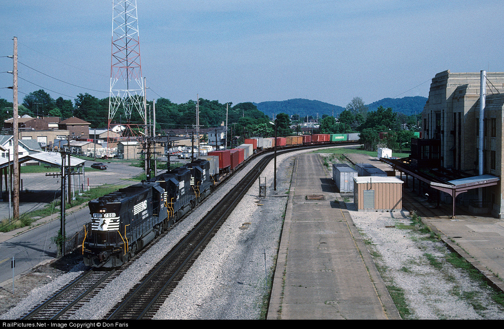 GP-40X #7001, one of three purchased by the Southern, heads out of town.