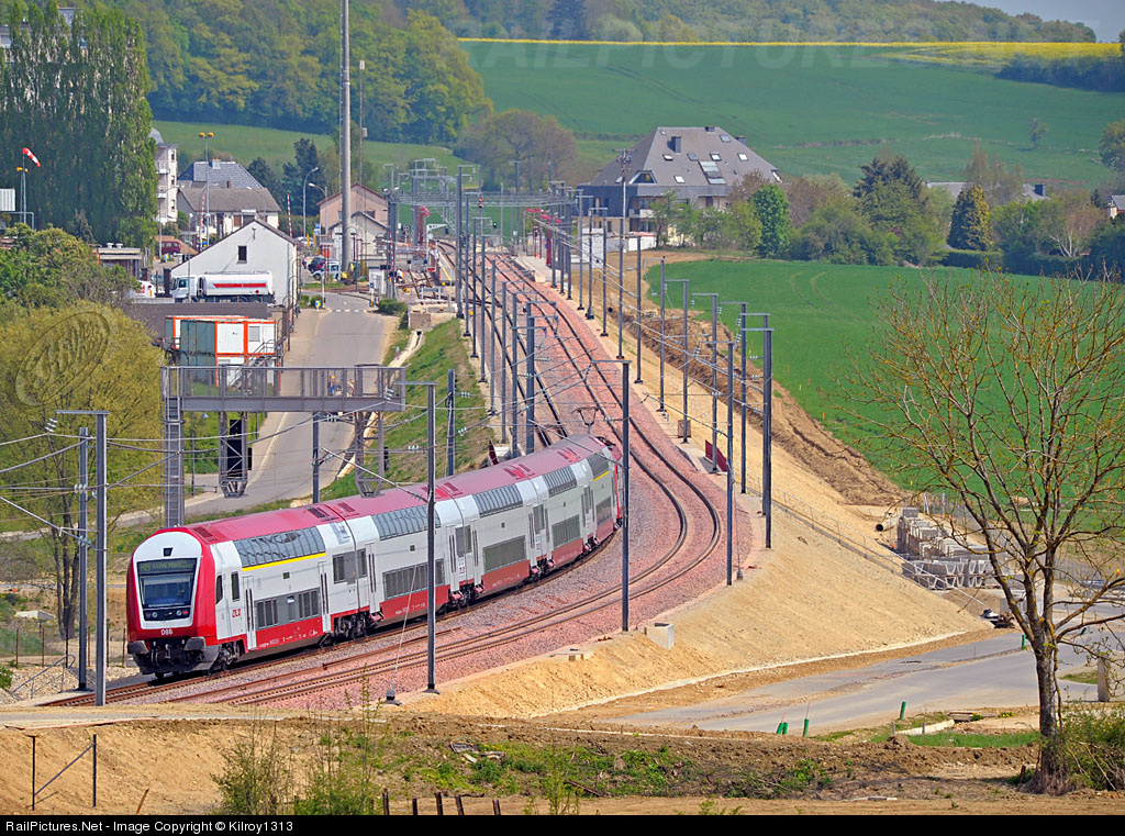 | Train from Petange approaches Dippach station (at the end of the straight track section). Pulled by electric loco #4002, this train uses the "wrong" track to move towards the stations platform, thus the overhead wiring of the right track has to been finished yet. The whole trackwork is renewed as the line is in the way to be converted from single to double track. |