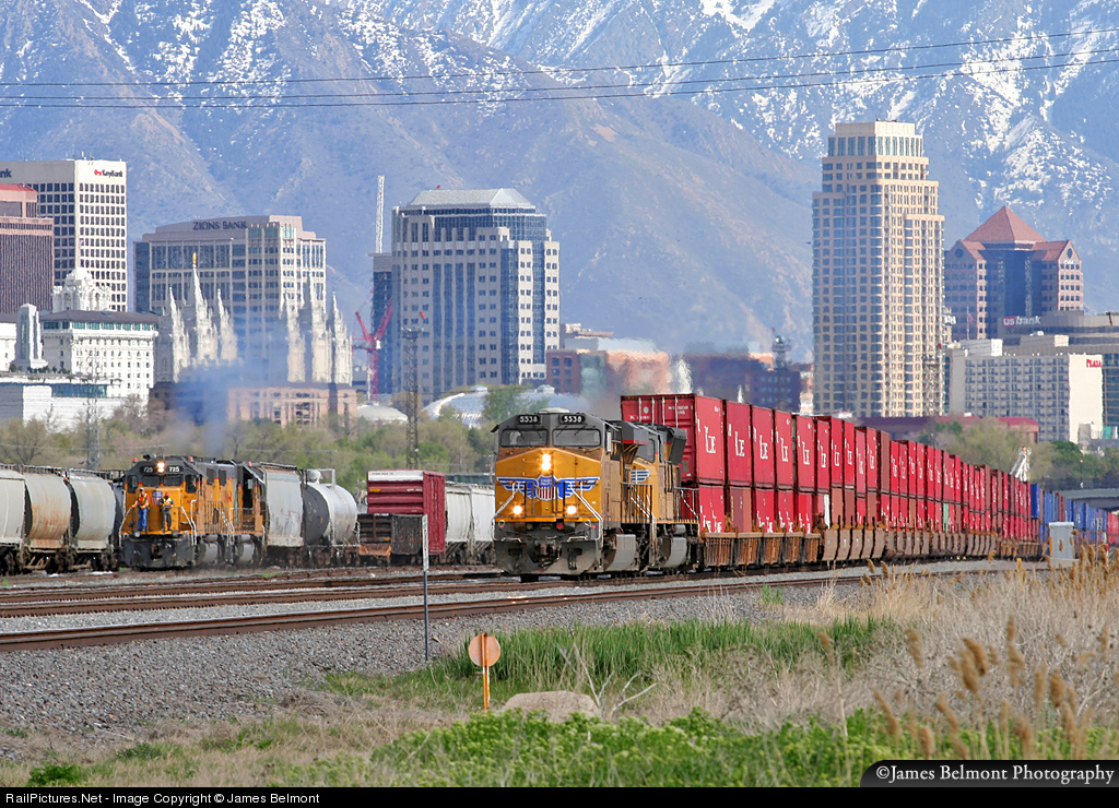 RailPictures.Net Photo: UP 725 & UP 5538 Union Pacific GE ES44AC at Salt Lake City, Utah by James Belmont