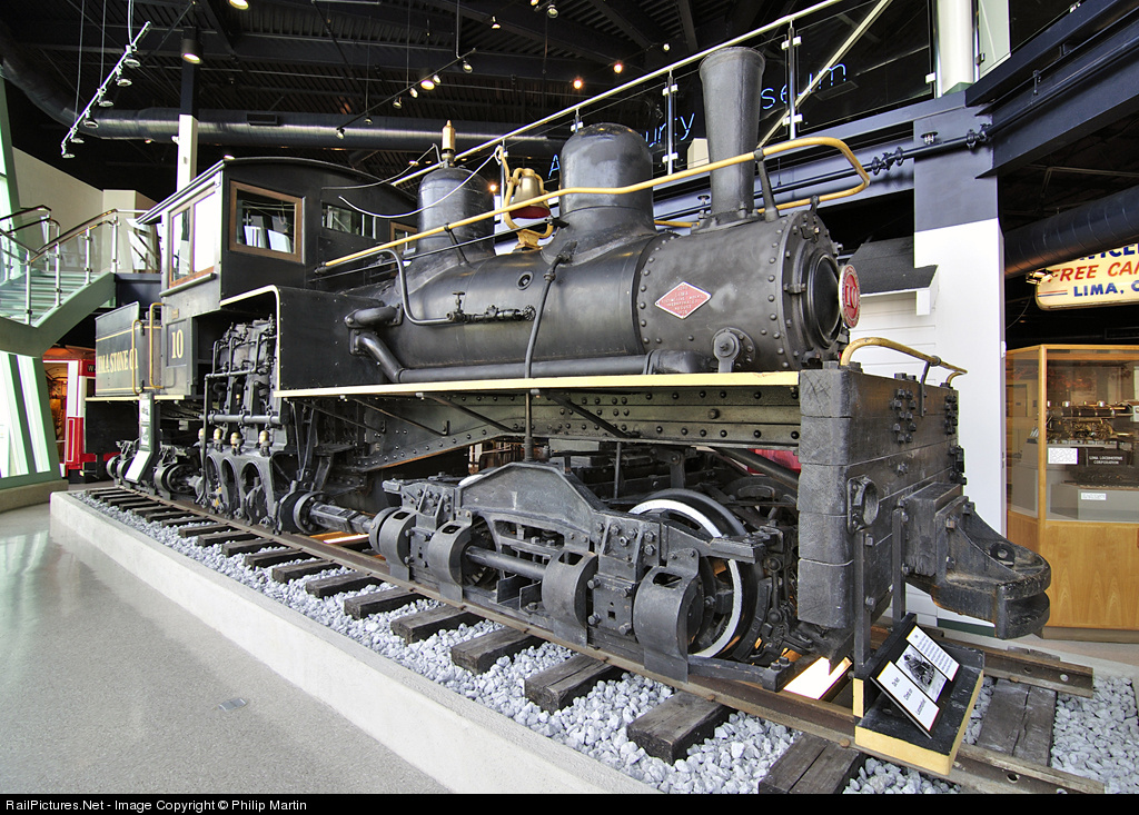 Few Shay Geared locomotives can share such a spotlight as Lima Stone Co. #10. Built in, served for, and retired in Lima, OH, this 24 ton jewel has been a faithful survivor of the over 3300 Shays produced in the town. Built new for Lima Stone Company in 1925, it spent it's life on the crooked narrow gauge tracks in the bottom of a Ohio quarry until the 1950's, when it was saved by a local preservationist, who understood it's importance to the community to tell the Lima story. It was refurbished in it's birthplace, then owned by Baldwin-Lima-Hamilton, before being placed on display at the Allen County Historical Society in 1956. In 2009 the locomotive was given a spectacular new home, visible for all to see from one of the town's main streets, as well as inside a beautiful museum.