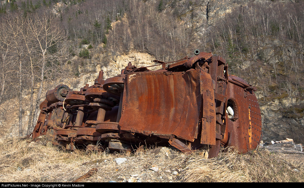 White Pass Archaeology: WPY #60. Sitting on a bluff near the north end of the White Pass Yard in Skagway is one very forlorn-looking, little 10-wheeler with a rather odd story to tell. This particular machine was a narrow-gauge, outside-frame locomotive built for the White Pass & Yukon by Baldwin in 1900. Her road number was 60 and she led a fairly long career on the line before finally being put out to pasture in 1942. On most railroads, she probably would have been sent off to the scrappers, but the WP&YR had developed a more practical use for retired motive power and rolling stock. In the 1940s, they often elected to bury the equipment between the Skagway River and the roadbed to help stabilize the latter and prevent washouts. Using retired equipment as "riprap" was probably cheaper than sending it to a scrapper (especially from a remote location such as Skagway) and was a practical solution to a common problem on mountain railroads. In the case of #60 here, she was essentially buried next to the river near MP 2.5 in 1949....and then "exhumed" about 40 years later and placed here in the yard, where she's now spent another 20+ years resting on her side. While her history time line is rather clear, the reasoning behind her retrieval and any future plans for her remain shrouded in mystery. A sister locomotive that was also retrieved in the same time frame has since been sold to a buyer in the upper mid-west with some sort of plan for restoration. If there are similar plans for #60, no one in Skagway seems to know about them. She's missing her pilot truck, rods, cab and nearly all external appliances, so even a cosmetic restoration would be a challenge. For now, this little 10-wheeler remains just one of several pieces of White Pass history that are visible to amateur archaeologists as they hike along the shores of the Skagway River.