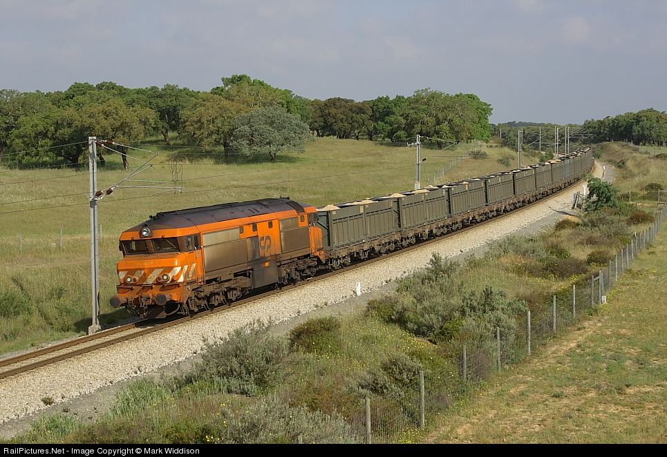 1912 Heads towards Canal Caveira with 68981 09.05 Somincor to Minas de Nevas Corvo loaded sand containers.